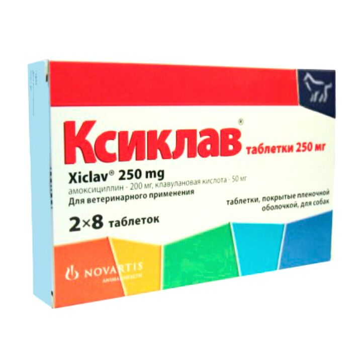 Ксиклав – антибиотик пенициллинового ряда с бактерицидным действием. Препарат предназначен для лечения первичных/вторичных бактериальных инфекций мочеполовой и дыхательной системы, пиодермии у собак и кошек. В состав входит два главных компонента - амоксициллин и клавулановая кислота. Они проявляют активность против грамположительных/грамотрицательных микроорганизмов и штаммов, чувствительных к амоксициллину, продуцирующих специфический фермент (β-лактамаза).