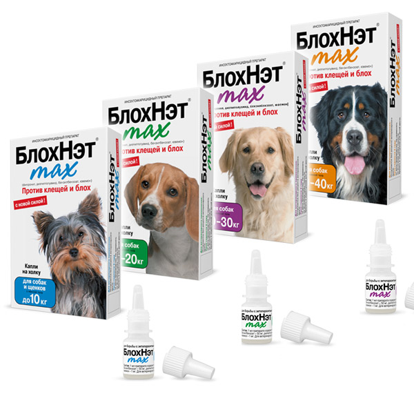 1. Капли БлохНэт на холку для собак в разной дозировке, отличаются по весовой категории животного;
