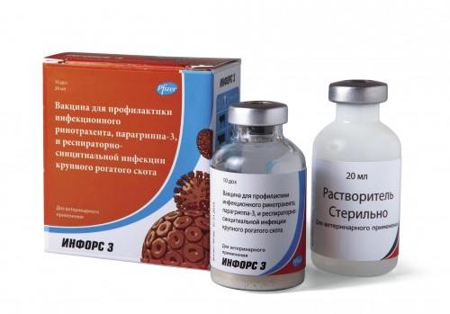 Вакцина нужна для профилактики парагриппа-3 и ринотрахеита, респираторно-синцитиальной инфекции КРС, применяется перед транспортировкой живтоных. Если телятам была введена вакцина в возрасте до 6 месяцев, то в таком случае необходима повторная ревакцинация через полгода. Затем Infors 3 вводят каждый год.